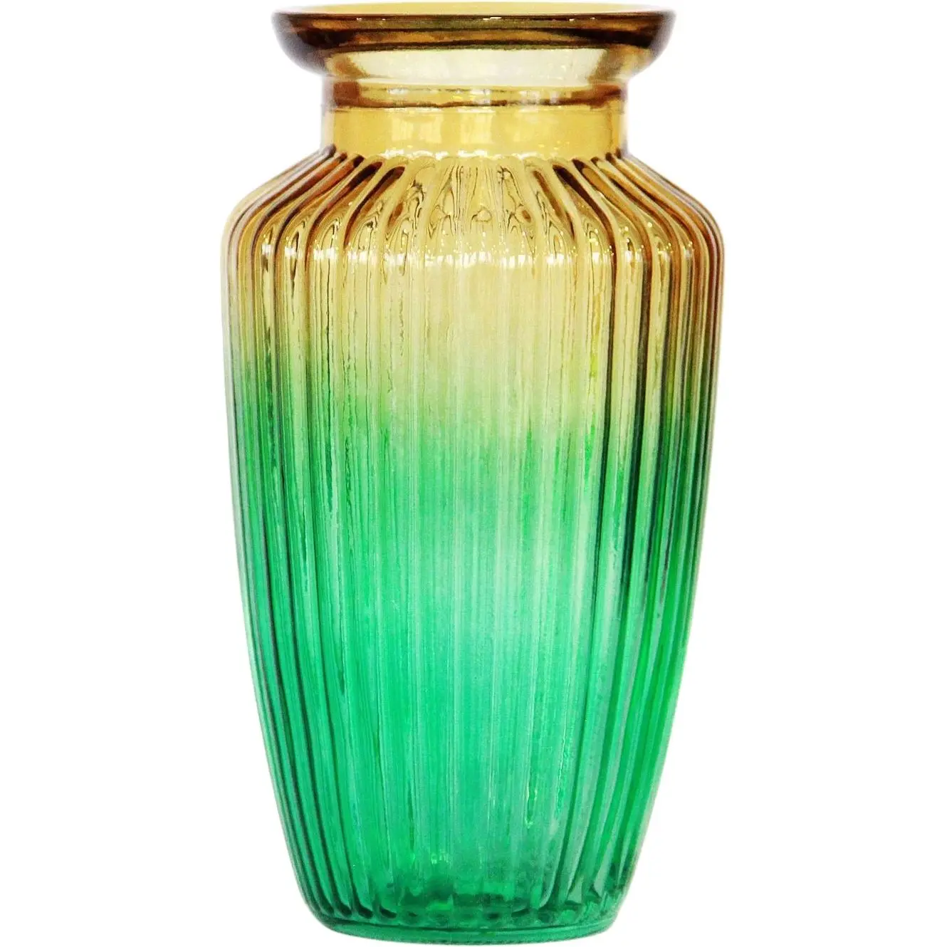Ваза для квітів Crystal Jane lines скляна 21см жовто-зелена (YBCG-240425-49)