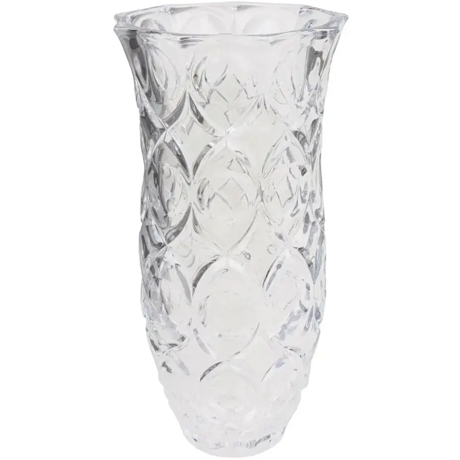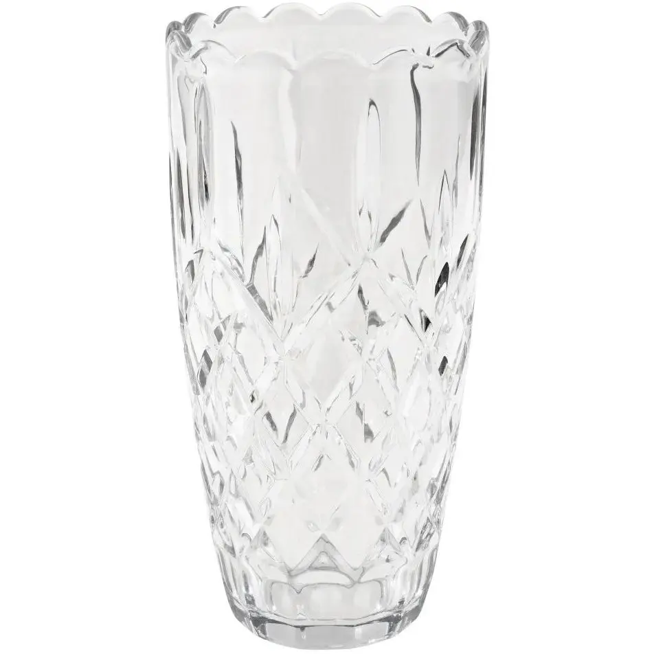 Ваза для квітів «Зефір» NGD186VASE виготовлена з якісного богемського скла. Вона масивна, виглядає ошатно й досить дорого. Підійде для подарунка на ювілей. Висота вази – 30 см. Стінки рельєфні, прикрашені ромбами. Діаметр виробу – 15 см. Краї вази прикрашені декоративними зубцями. Це робить її вишуканою й оригінальною. Ваза підходить для квітів з довгими стеблами – троянд, гладіолусів, жоржин. Вона прикрасить будь-яку кімнату в житловому будинку. Прозора ваза упакована в елегантну коробку синього кольору. Перегляньте інші товари з подібними характеристикамиДеко