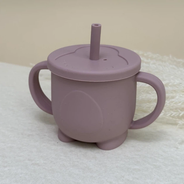 Силіконовий поїльник непроливайка з трубочкою, Пінгвін, 1 шт, Пурпурний