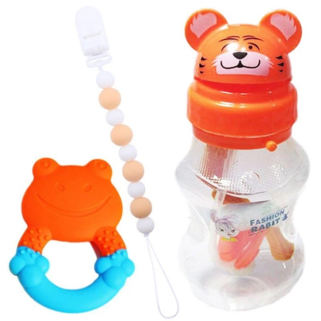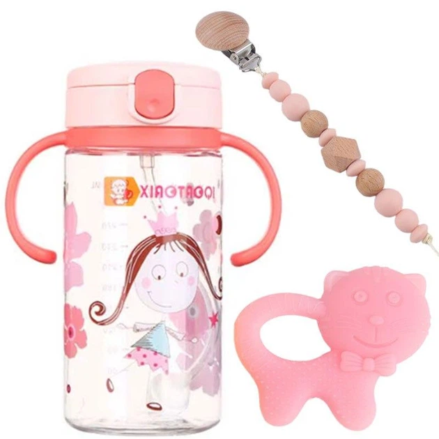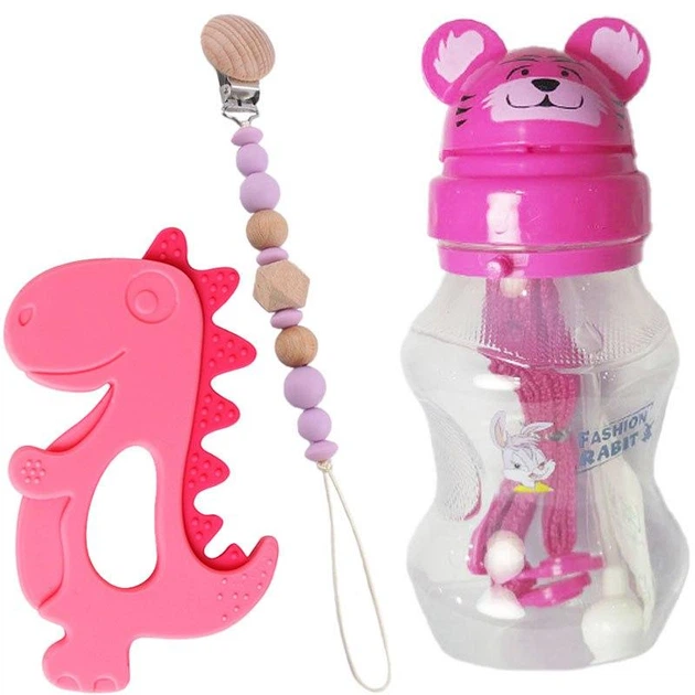 Дитячий поїльник-непроливайка зі зворотним клапаном і прорізувач з утримувачем намистинами Рожевий n-12535