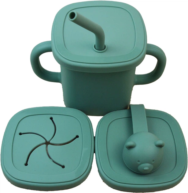 Дитячий поїльник-непроливайка Ведмедик силіконовий 300 мл, контейнер для снеків три кришечки Зелений(vol-10246)
