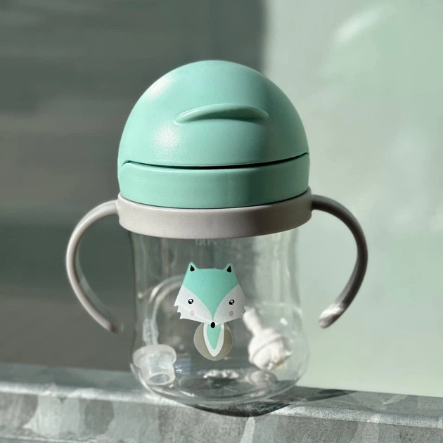 Поїльник непроливайка з силіконовою трубочкою з ручками Їжачок М'ятний PPE-33
