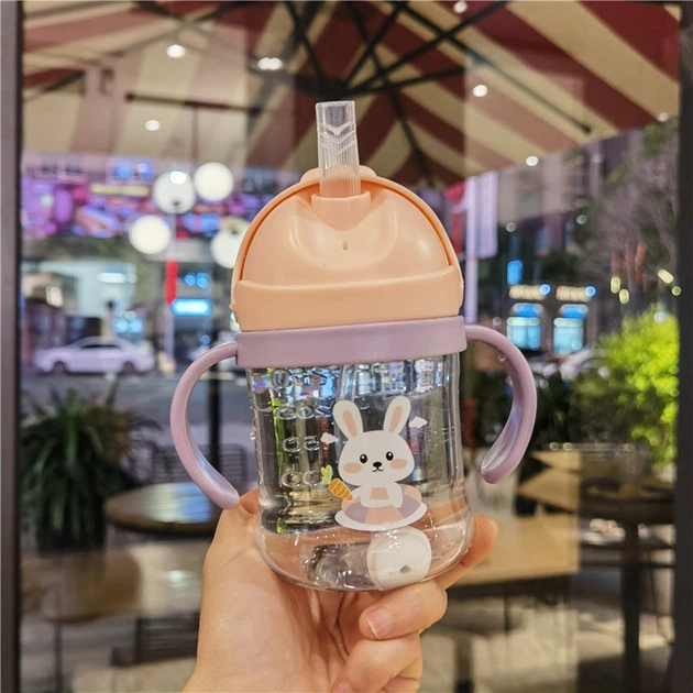 Поїльник непроливайка з силіконовою трубочкою з ручками Зайчик Персиковий PPZ-12