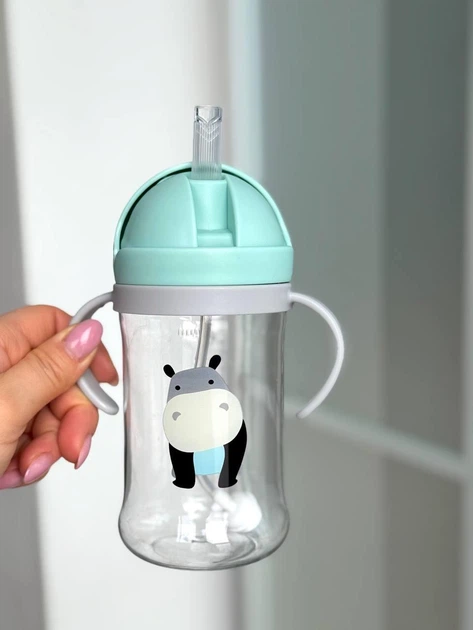Поїльник непроливайка з силіконовою трубочкою з ручками - Гіпопотам / 350 мл