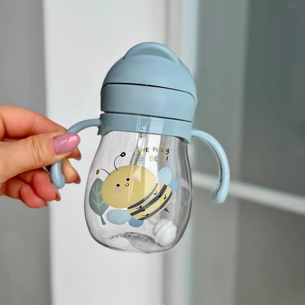 Поїльник непроливайка силіконовою з трубочкою з ручками - Блакитний з бджілкою 300 мл