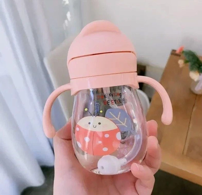 Поїльник непроливайка 250 мл бутилочка, пляшечка з силиконовою трубочкою дитяча рожевий