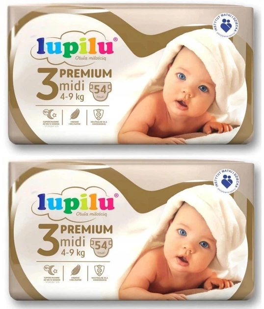 Підгузки Lupilu Premium Midi Розмір 3 Вага 4-9 кг 108 шт (2 упаковки)
