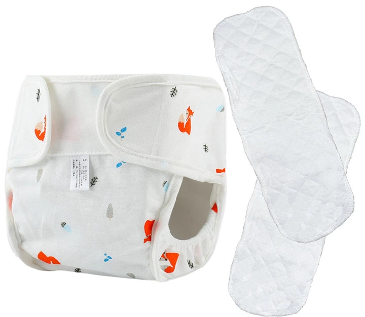 Підгузник дитячий 2Life розмір М з бортиками багаторазовий зі змінними 2-ма вкладишами Білий з Лисенком n-12689