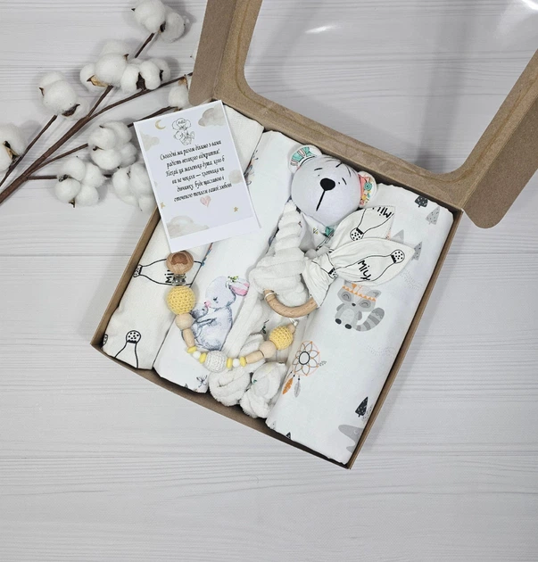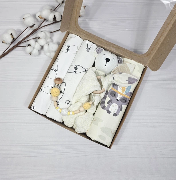 Набір для новонародженого: 2 фланелеві пелюшки та іграшки a.l.babybox Мілк №2