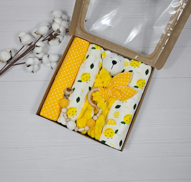 Набір для новонародженого: 3 пелюшки з комфортером a.l.babybox Лимон