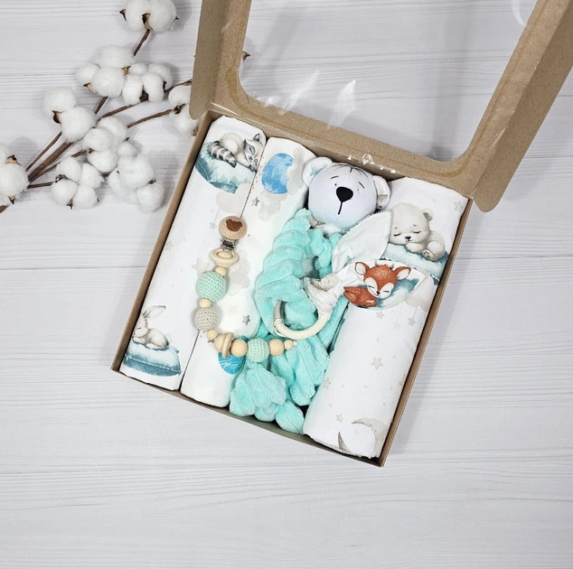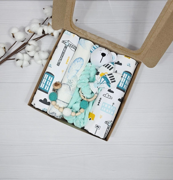 Набір для новонародженого: 3 пелюшки і гризунець з тримачем a.l.babybox Патрічний
