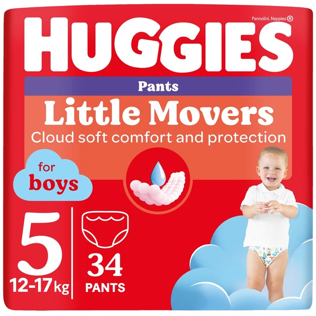 Підгузки-трусики Huggies Little Movers Pants 5 (12-17 кг), 34 шт. для хлопчиків