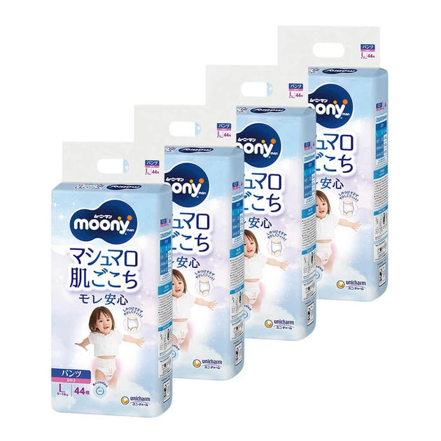 Трусики Moony L (9-14кг) 44штук, для дівчат 4 упаковки