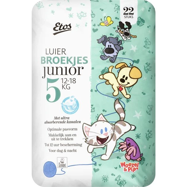 Преміум підгузники-трусики Etos LuierBroekjes Woezel & Pip Luiers 5 розмір ( 12-18кг ) уп/22шт