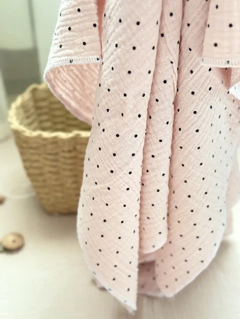 Пелюшка жатий муслін Горошок на пудровому 70*100см