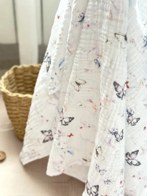 Пелюшка жатий муслін Вишеньки на білому 70*100см