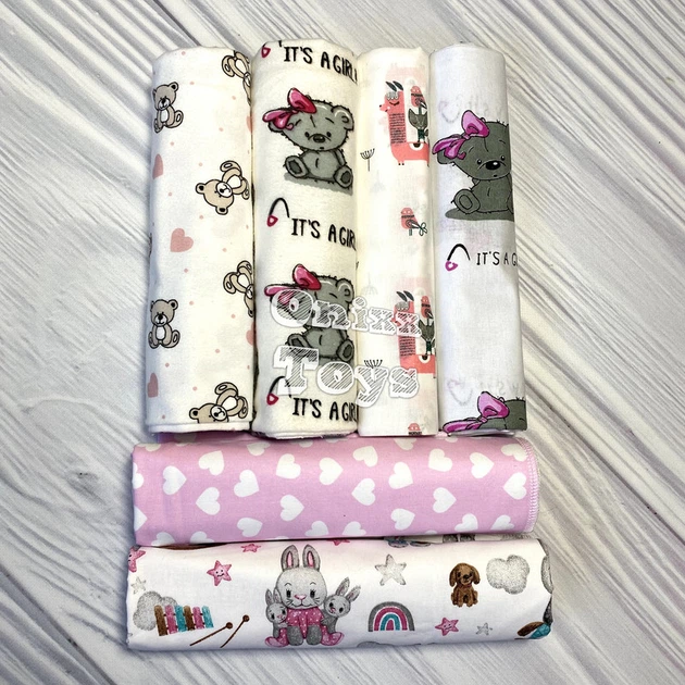Набір дитячих пелюшок для дівчинки 2 пелюшки байка 2 пелюшки бязь 2 пелюшки ситець - 90 х 110 см (6 шт) 10.008