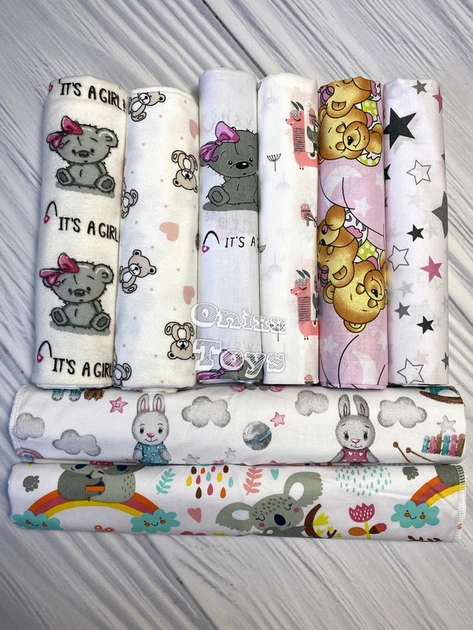 Набір дитячих пелюшок для дівчинки 2 пелюшки непромокальні 2 байка 2 бязь 2 ситець 2 муслін (10 шт) 10.080