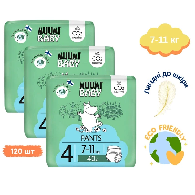 Еко-підгузки трусики Muumi Baby Pants Size 4 (7–11 кг) Maxi 120 шт
