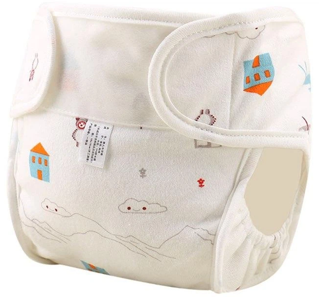 Багаторазовий бавовняний підгузник з бортиками для дітей розмір S Білий з Будинками v-12682