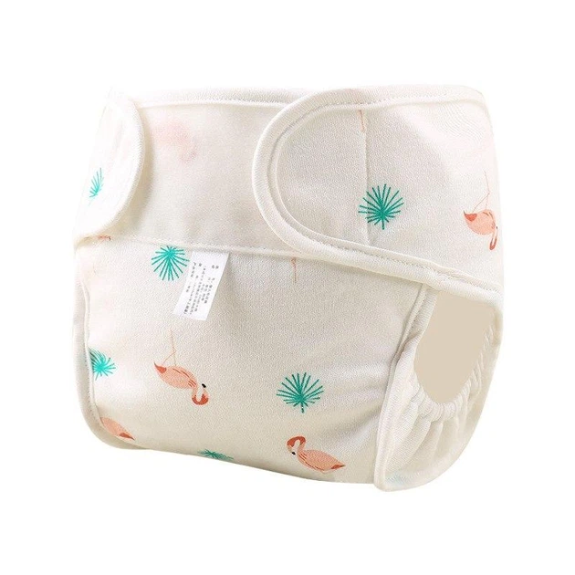 Багаторазовий бавовняний підгузник з бортиками для дітей розмір М від 6 до 12 місяців Білий з Фламінго v-12560