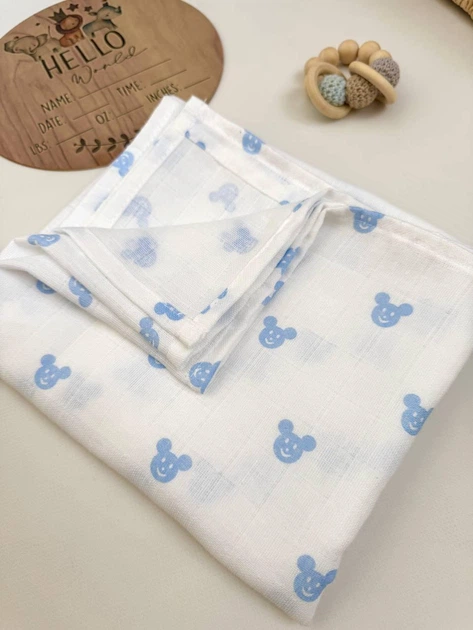 Муслинова дитяча пелюшка 9080 см (100 бавовна) Міккі біла з малюнком