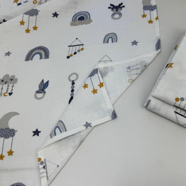 Муслинова дитяча пелюшка 9080 см (100 бавовна) Веселки біла з малюнком