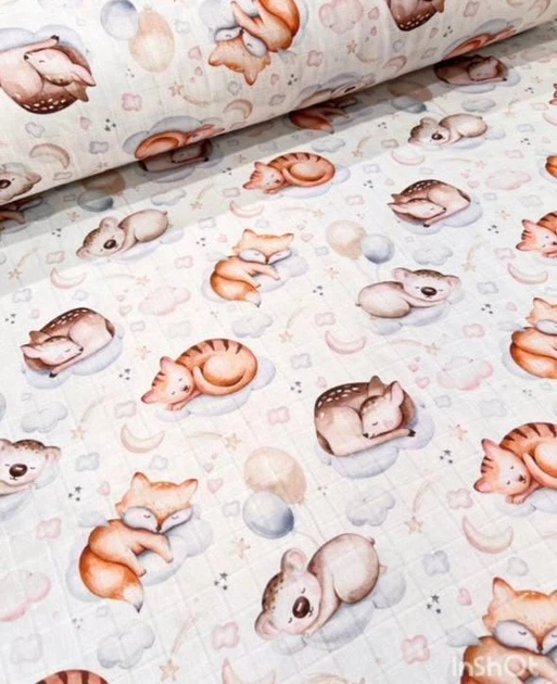 Муслинова дитяча пелюшка 9080 см (100 бавовна) Sleeping animals біла з малюнком