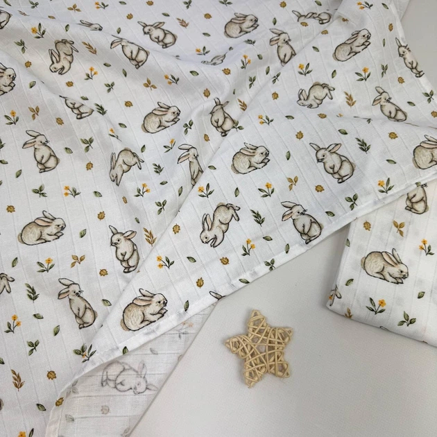 Муслинова дитяча пелюшка 9080 см (100 бавовна) Bunny біла з малюнком