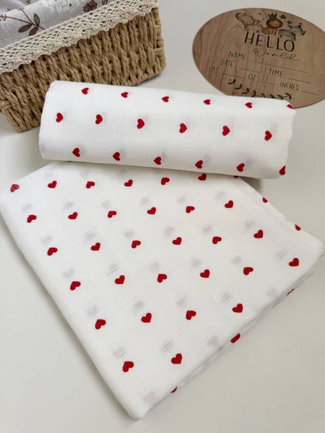 Муслинова дитяча пелюшка 9080 см (100 бавовна) біла з малюнком Червоні Серця