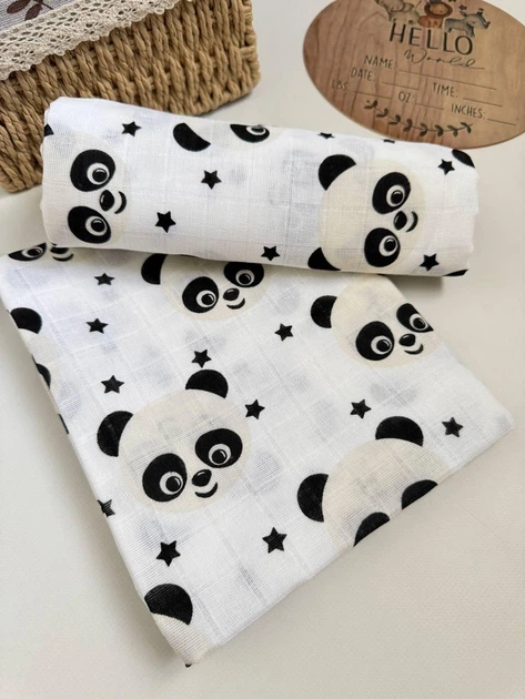Муслинова дитяча пелюшка 9080 см (100 бавовна) Панди біла з малюнком