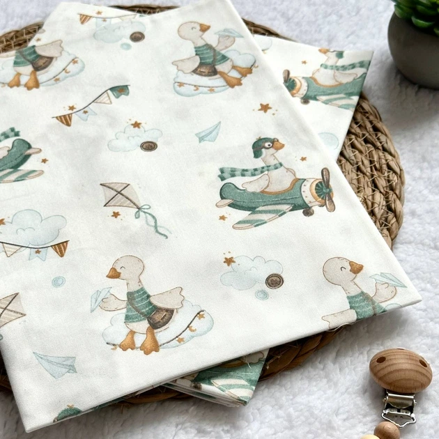 Пелюшка дитяча сатинова , Гусак на літаку зеленому ,80*100см