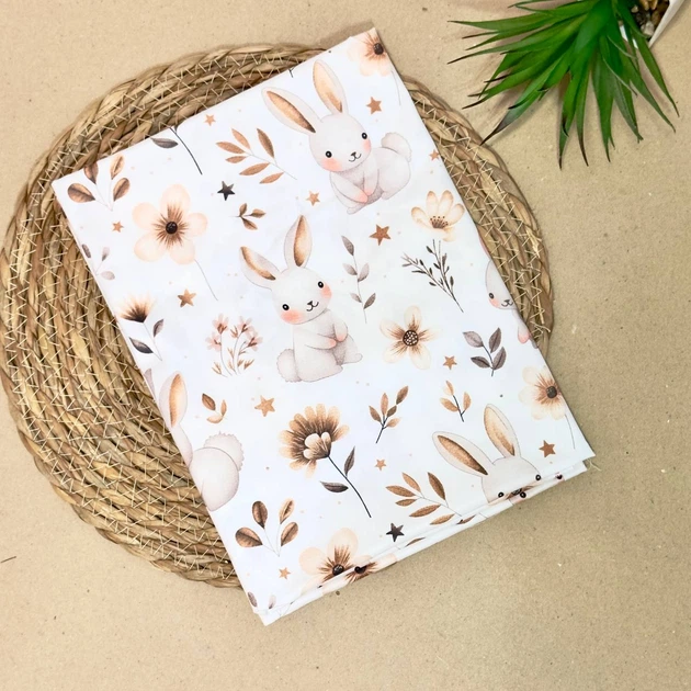 Пелюшка дитяча сатинова , Зайчики та квіти ,80*100см