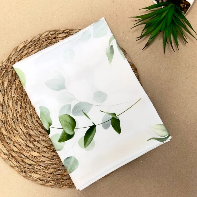 Пелюшка дитяча сатинова , біла з зеленими листочками,80*100см
