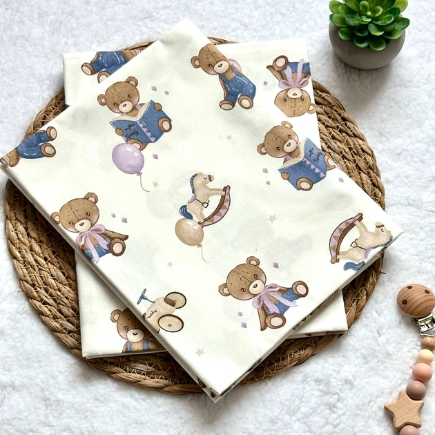Пелюшка дитяча сатинова , Ведмедики в синьому ,80*100см