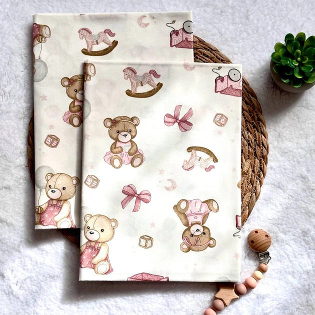Пелюшка дитяча сатинова , Ведмедики в рожевому ,80*100см