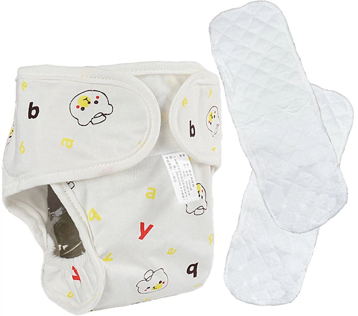 Підгузник дитячих з бортиками розмір S багаторазовий зі зміненими 2-м вкладцями Білий з Мішкою (vol-9780)