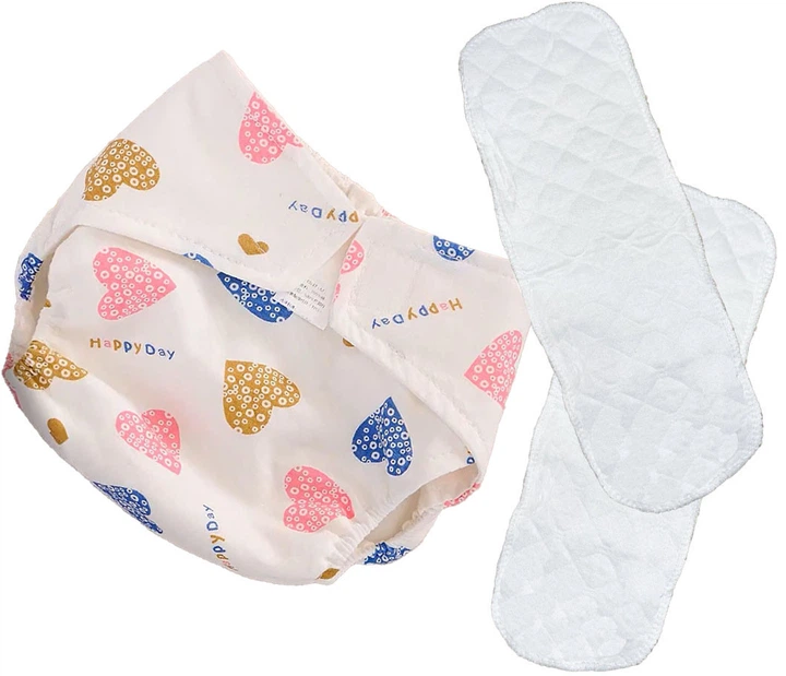 Підгузник дитячий багаторазовий L зі зміненими 2-м вкладцями Білий з принтом серце (n-9806)