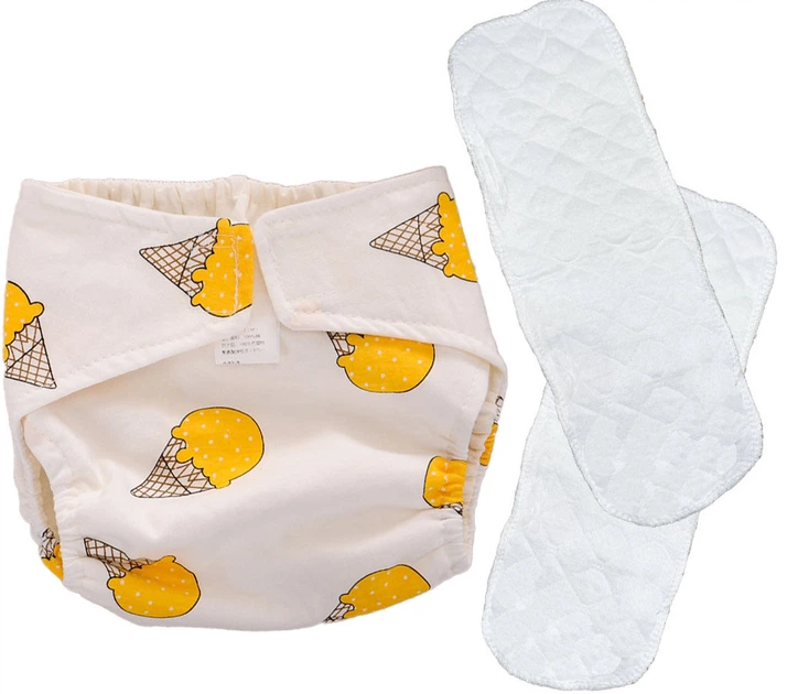 Підгузник дитячий багаторазовий L зі зміненими 2-м вкладшками Білий з принтом морозиво (n-9803)