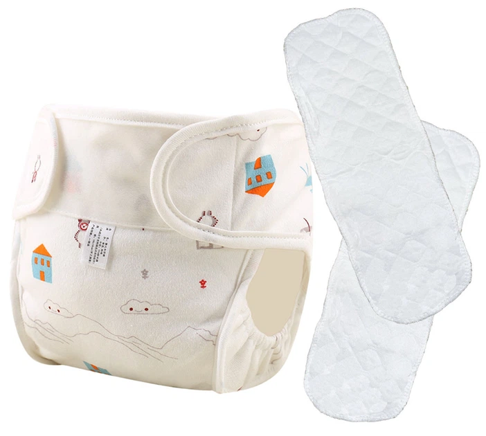 Підгузник дитячих з бортиками багаторазовий зі зміненими 2-м вкладцями Білий з будиночком (vol-9775)