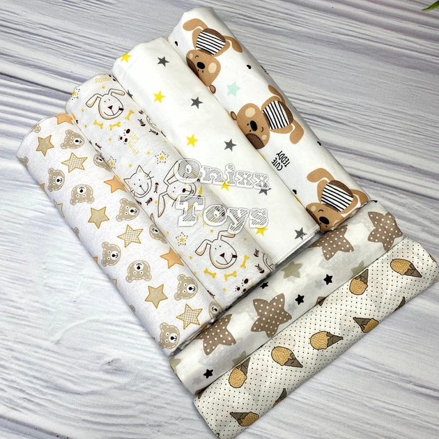 Набір дитячих пелюшок універсальних 2 пелюшки байка 2 пелюшки бязь 2 пелюшки ситець - 90 х 110 см (6 шт) 10.006