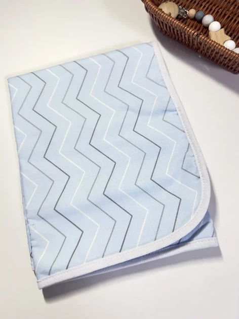 Непромокаюча пелюшка поплін Зигзаг на блакитному 50*80см Маленька Соня
