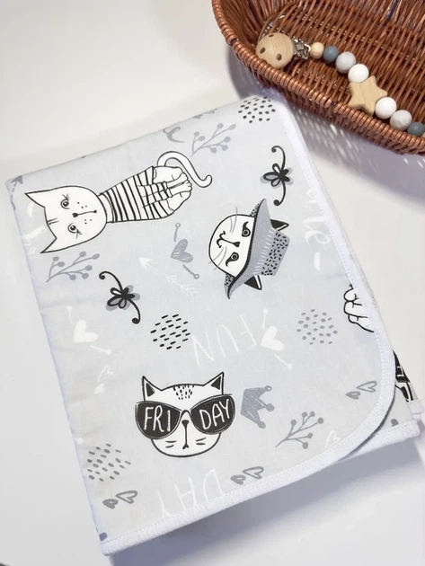 Непромокаюча пелюшка поплін Котики на сірому 50*80см Маленька Соня