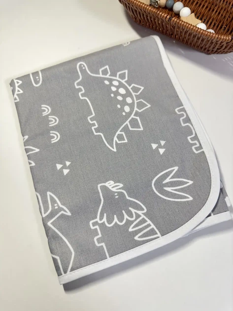 Непромокаюча пелюшка поплін Діно на сірому 50*80см Маленька Соня