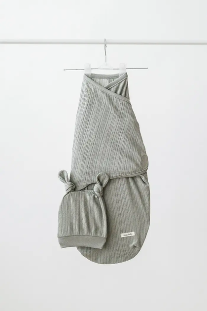 Євро пелюшка на липучці дитяча європелюшка Літня кокон з шапочкою для новонародженого 3-6 міс Сизий (DS171)