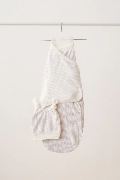 Євро пелюшка на липучці дитяча європелюшка Літня кокон з шапочкою для новонародженого 3-6 міс Молочний (DS169)