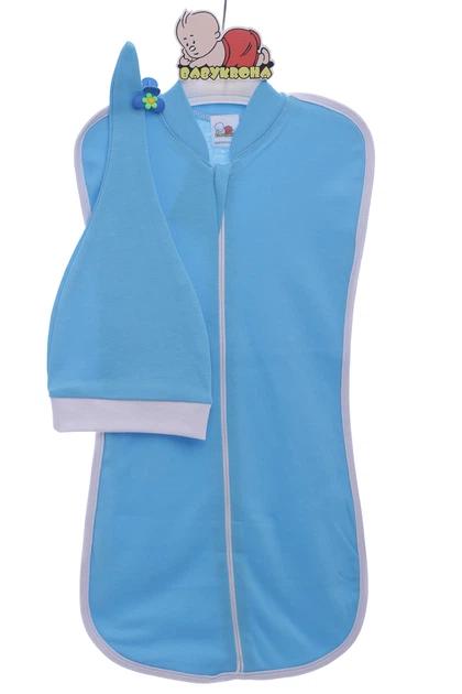 Євро-пелюшка з шапкою для хлопчика інтерлок Babykroha ніжно блакитний 62 см (54595)