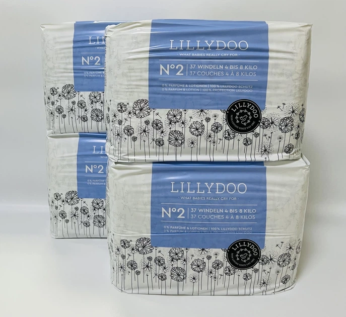 Набір з 4 уп по 37 штук (разом 148 штук) підгузків дитячих Lillydoo 2 розміру, 4-8кг