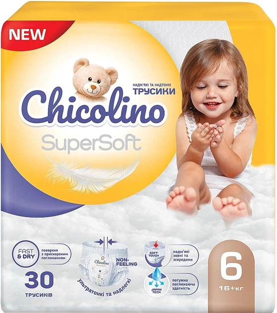Дитячі підгузки-трусики "Super Soft" 6 р., 16 кг, 4х30 шт. - Chicolino 120шт (1146791-1530419-2)