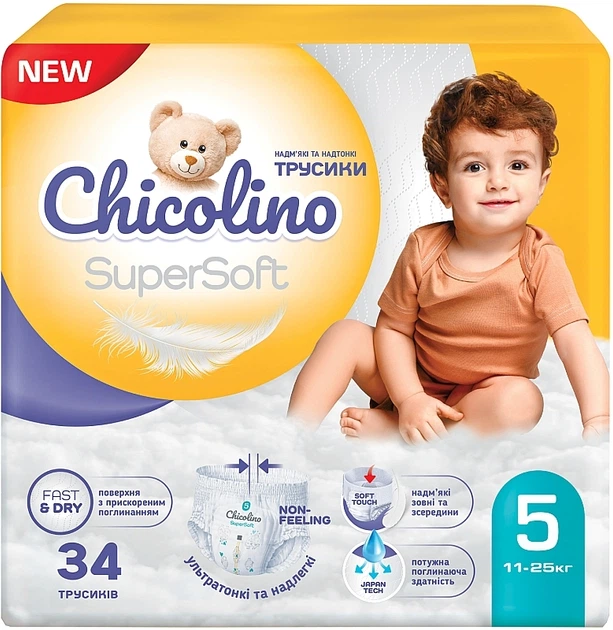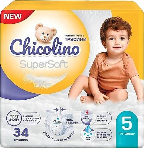 Дитячі підгузки-трусики "Super Soft" 5 р., 11-25 кг, 34 шт. - Chicolino 34шт (1140955-1521814-2)